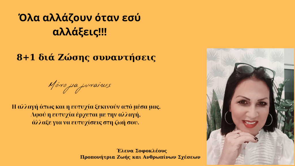 Το πρόγραμμα αυτό των 8+1 διά ζώσης συναντήσεων αφορά μόνο γυναίκες και είναι ακριβώς αυτό που χρειάζεσαι και που θα αλλάξει τη ζωή σου.